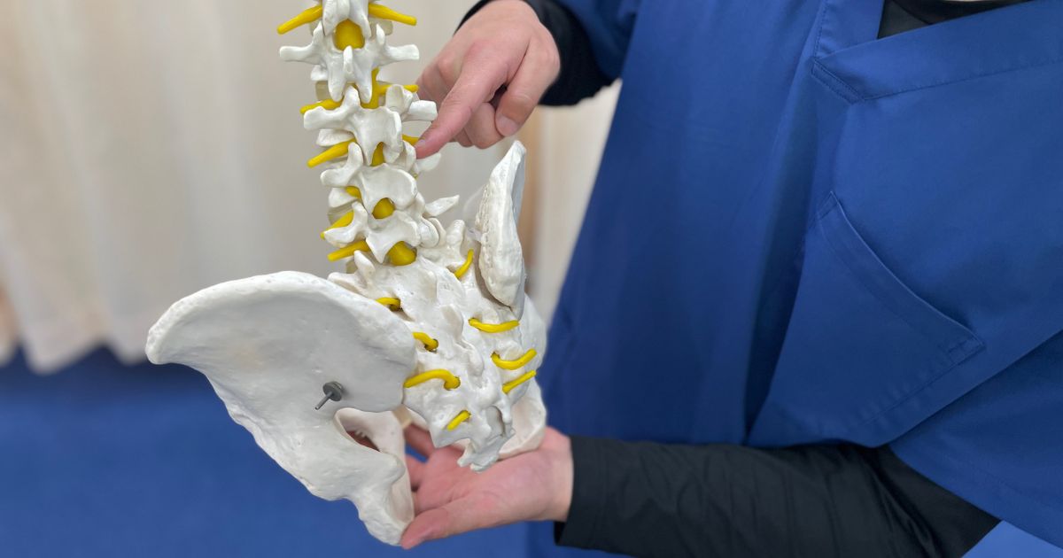 この状態から抜け出す為には痛みのある局所だけではなく、全身の骨格、筋、筋膜、神経へのアプローチが必要です。特に仙腸関節はミリ単位の遊びがあるのですが、日々の立ち仕事や座り仕事の負担が溜まったり、転倒したりといった何かしらの拍子に固まってしまう事があります。仙腸関節が固まると背骨のS字カーブのクッション機能や、自律神経の機能も低下します。
