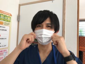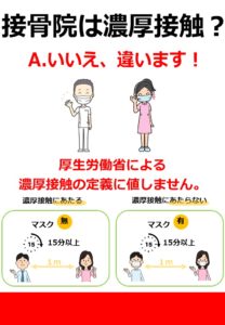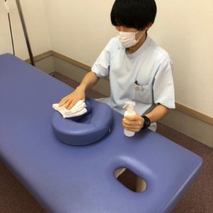 ・施術時にマスク着用が困難な場合を除き、患者さんには常時マスク着用を促し、施術者もマスクを使用するなど、施術者及びスタッフと患者の飛沫が直接接触しない工夫を最大限に行う。